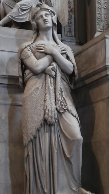 我觉得这座雕塑细腻生动,其神态与其它宗教塑像相去甚远。此时此刻,如不是置身于肃穆庄严的大教堂之中,我几乎相信这位神情凄凉的女子是来自俗世民间,正为怀中死去或重病的亲人而悲伤流泪……。