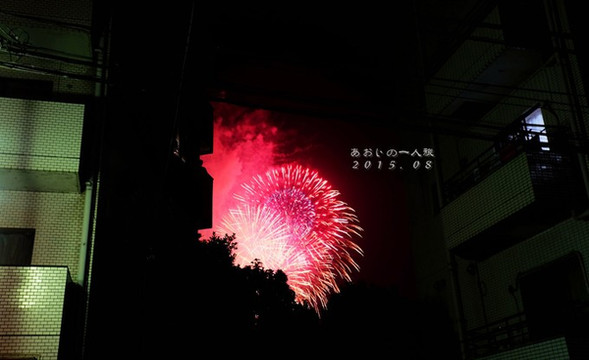 从群马回来的巴士把我们放在东京站,我们坐京王线回家,平时和我们一站下车的绝对超不过十个,今儿人多的简直走不动,太可怕了!和北京春节逛庙会的架势差不多......对于人多一向比较反感的我俩,一下子没了看烟火的兴致,回家放下东西,也没换浴衣就换了双夹脚拖就出门了。一下楼就被一对儿对儿的男男女女闪瞎了眼,想想那个平日里清净的街道,真是只有皱眉的份儿了。跟着人群慢悠悠地往前挪,帅哥美女可真是不少,基本两步一个的频率,但是瞅了一眼花火大会的会场,那一堆人脑袋也是够了,于是我俩一拍即合立即向后转,逆人流逃走去觅食了~一路边走边拍了几张也不错的样子~我觉得这个花火大会吧,要是实在找不到帅哥相伴,就在自家阳台上看看也是挺美的,真没必要齁热的天儿非和一堆羡煞旁人的情侣们一起凑热闹了~