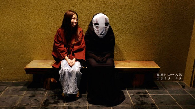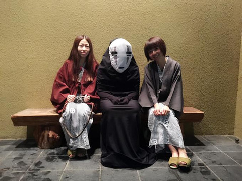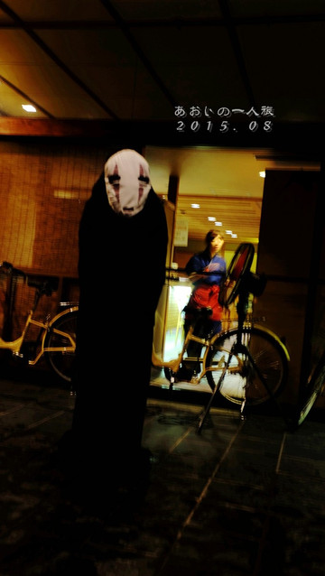 后来无面男还是一个人坐在角落一动不动,我和小潘就坐在长椅上看着星空聊天,结果一回头发现无面男站在我俩后面和我们一起望天儿呢哈哈哈~把小潘吓了一跳一直说「怖い!怖い!怖い!」我就在一旁傻乐,原谅我我本来就喜欢这种奇奇怪怪但其实小姑娘都觉得挺慎人的玩意儿~ (ง •̀ᗜ •́)ง 我才不会告诉你无面男其实是很待见我俩才一直跟着我们的~