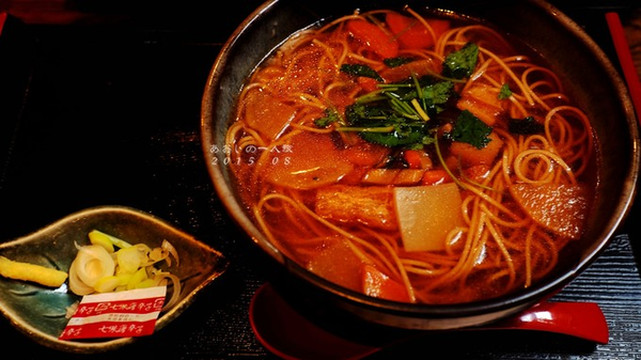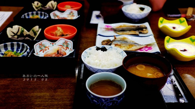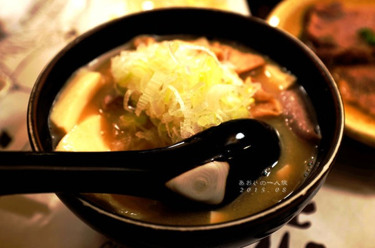 早饭还没消化的俩人在看到menu上这个诱人的咖喱时,开始不约而同地咽口水。如果说在七里ケ滨的Bills吃到的咖喱已经是超出认知范围的好吃,那么这个咖喱一样惊艳到了我们!!小潘后来认证这个比Bills的还好吃!的确Bills的咖喱是被改良成比较日式西餐的感觉,口味清淡。这家的咖喱,味道浓厚,能尝出汤汁里有经历了不少年头沉淀下来的传承的味道。两边的汤汁还不一样,一个是浓厚的酱汤汁一个则是变换了口味偏洋化的汤汁加了新鲜的蔬菜,特别到位!基本上是我这趟日本之行的咖喱之最了!!!