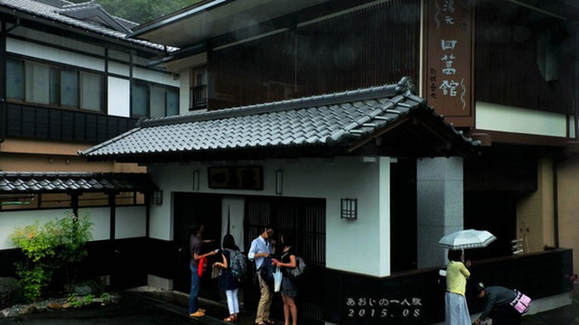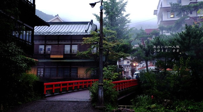 然后去群马县的时候,住了一晚温泉酒店,是四万温泉的积善本馆,冲着宫崎骏「千と千尋の神隠し」里的那座通往油屋的红桥去的。