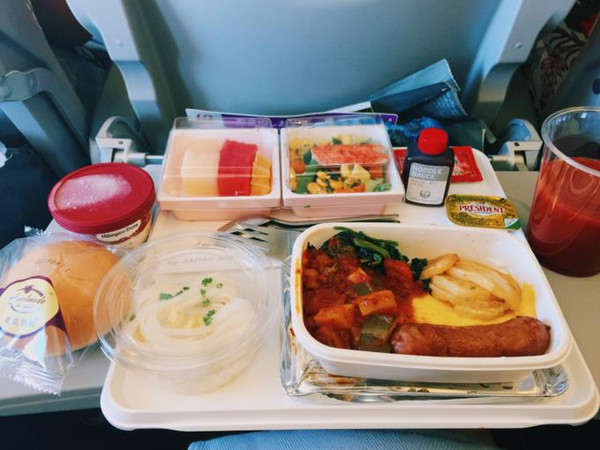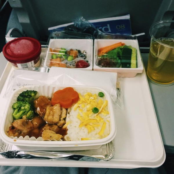 上了飞机当然就是吃吃吃啦~选择日航有一部分原因也是因为机餐嘿嘿~我能特没出息地说我全吃完了就差舔盘子了咩~( 是尊的好次~)不过~我可不是只顾着吃哦~我也有好好观察和享受日本空姐儿的温柔服务啦~结论就是服务周到的指数绝对和机餐好吃的程度成正比!!!