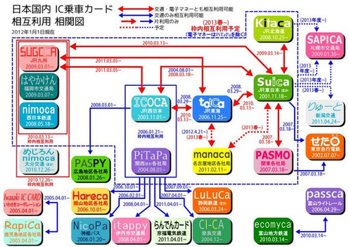 说一下交通卡,主要是有pasmo和suica(西瓜卡)两种,没有本质区别,简单来说,pasmo和suica是二家集团发行的预充值卡,前者是东京都地区私铁和地铁企业联合发行的预充值卡,后者是JR发行的预充值卡。但这二家企业达成一个协议:在大东京都区域内,每种预充值卡在对方的线路上也同样可以使用,即私铁地铁发行的pasmo卡可以在JR线路上刷(包括JR铁路线和巴士等)、suica卡也可以在私铁和地铁线路上刷。不管怎么刷(刷自家的还是刷对方的),票价没有优惠。卖点是便利性。但是如果你出了大东京都区域,pasmo卡就几乎没用了,而suica卡还能继续在JR线路上使用。所以,很明显,对旅行者来说,suica卡优于pasmo卡。对于大京都地区通勤上班族没有区别。