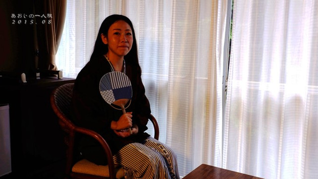 穿着和服坐下安静看着越南战争影片的美丽背影。