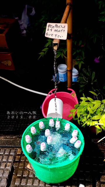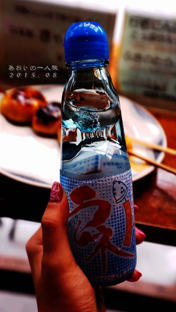 ラムネ~夏天的记忆呀~用冰凉的清水冰镇一桶波子汽水~因为不会开盖儿技巧还请教了旁边的欧吉桑,超级热心地帮我打开了,使劲拍一下盖子,这颗珠子就会掉进去,然后就可以开喝啦~汽水并没有什么特别,只是这些小巧思比较吸引我啦~