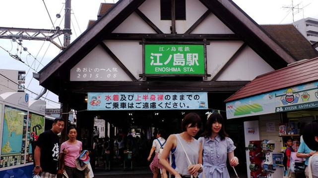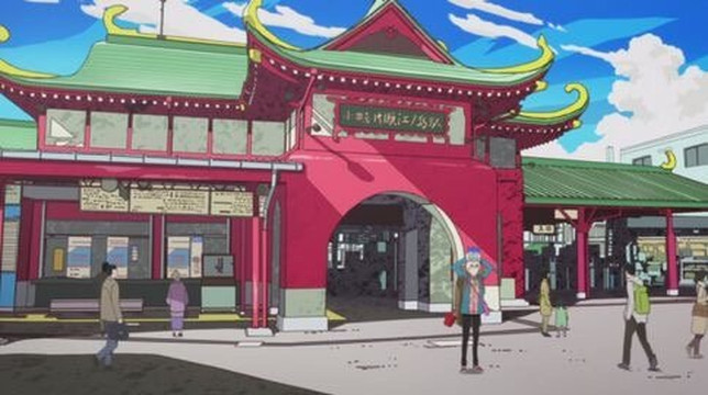 「钓球」原场景地:神奈川县藤泽市江之岛,弁天桥、青铜色的鸟居、水族馆和江ノ岛丼。