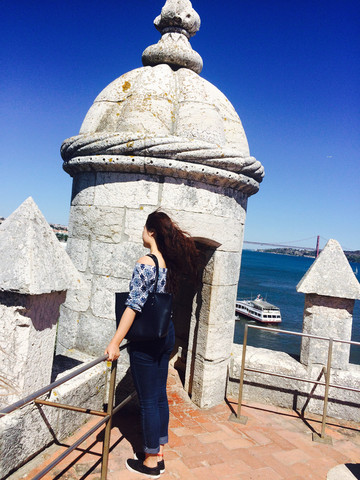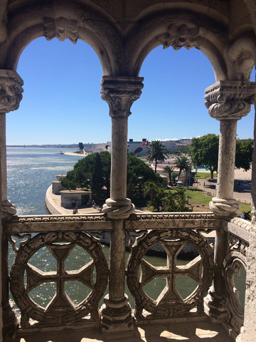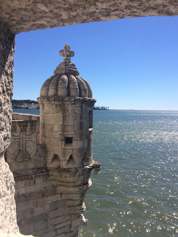 进到贝伦塔在底层的监狱,可以上顶层东望Tagus河及4月24日大桥,西眺大西洋,北望里斯本城