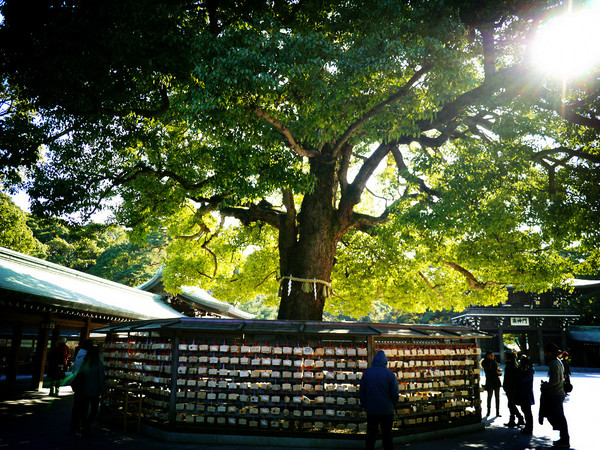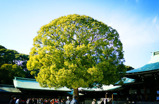 明治神宫绿意盎然,植被生长的程度与东京这个现代化的大都市简直格格不入(*???),据说明治神宫开始动工时荒芜一片,为实现百年后形成自然林的目标,从日本各地以及当时被抢占的中国东北、中国台湾、朝鲜等地运来树木十万余棵365种,11万志愿者参与植树,仅用50年就提前进入自然林状态。