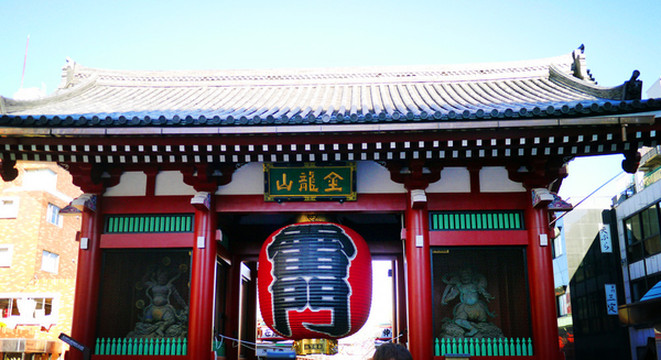 寺院的大门“风雷神门”是日本的门脸和浅草的象征,为祈求天下太平和五谷丰登而建造的,镇守着浅草寺。