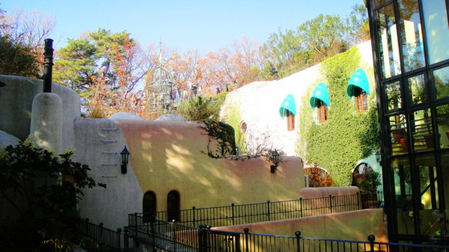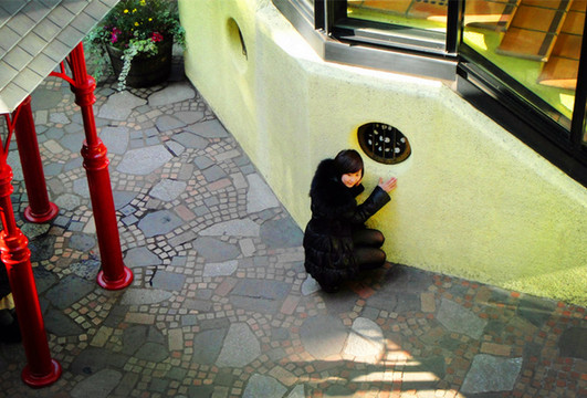 龙猫守护的城堡岗亭并不是真正的入口,在这里和龙猫隔窗相望,但无法进入。