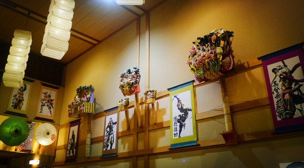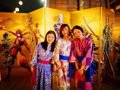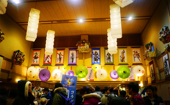进门就是黑压压的排队人群和大堂四周战国婆裟罗的人形牌,脱鞋、寄存、买票、领取电子手链(之后所有的消费都用手链记录)。