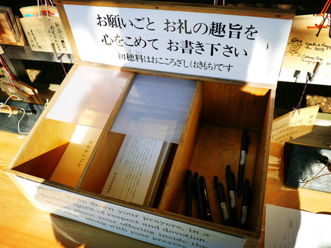 签文是一首中文诗,上有日文解释。如果抽到吉签便高兴地带回家,若抽到不满意的签也没有关系,寺庙中专门有一个系签的架子,只要系上了就会逢凶化吉。
