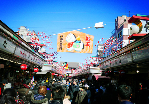 与本堂之间的街道名为“仲见世”,这条300余米长的参道聚集了百家商店,出售日本特色的小礼物、工艺品以及特色小吃等,价廉物美,是选购伴手礼的好地方。