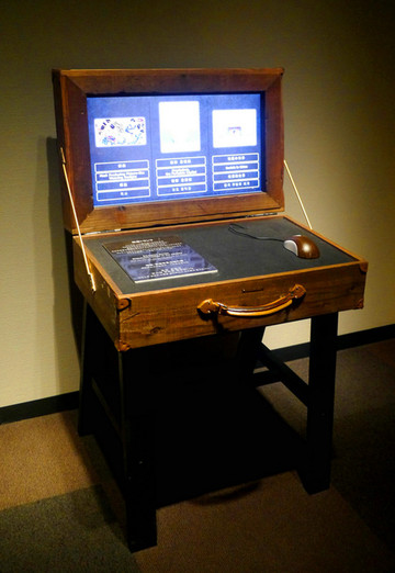 每一层展厅的角落都会有一台电脑供查询资料,被做成一只打开的复古木箱的样子,更加贴合建筑物的风格,里面的介绍为多国语言,十分方便。