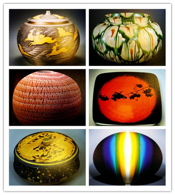 第五层是中国的漆器工艺(含螺钿等工艺)专场和清代雕刻工艺(玉雕、牙雕、角雕等)专场。这次去的时候还遇到日本传统工艺展60年特别展“人间国宝”,包括鹦鹉小禽葡萄纹箱、蒟蒻樱花烂漫盆、金彩银壶山背以及现代艺术品等。