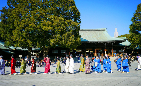 日本人的生活与神社息息相关,新生儿命名仪式、成人礼、毕业典礼和婚礼等各种人生重要仪式在明治神宫举行。恰逢新年,正好有大家族(大公司)前来做新年祈祷,零距离亲历了一场传统的日式祭典。(o゜▽゜)o☆