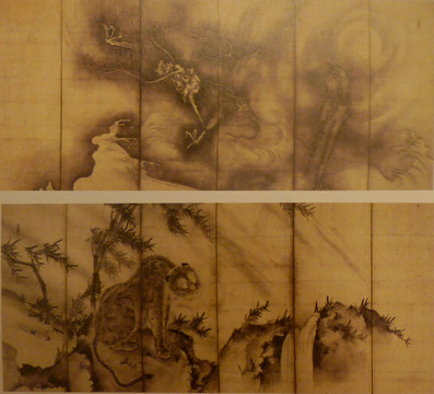 室町时代僧侣画家雪村周继的作品《龙虎图》屏风