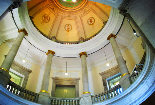 整座博物馆的建筑和内部装饰很有西洋特色,巨大的彩绘玻璃窗,欧式复古的吊灯,各处都有西洋雕刻以及大理石的装饰。