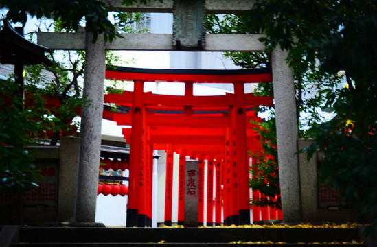 院子里最显眼的是几棵大树,夫妇楠和绘马特别显眼。夫妇楠是两棵楠树,以注连绳相连接,象征夫妻相随,爱情美满,被日本人视为神木。