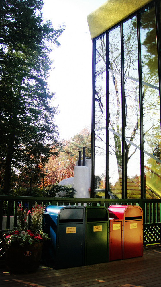 一楼中院里还有许多漂亮的场景可以看,红猪、龙猫、神隐少女中的动物们、灰尘精灵、哈尔的城堡无处不在。