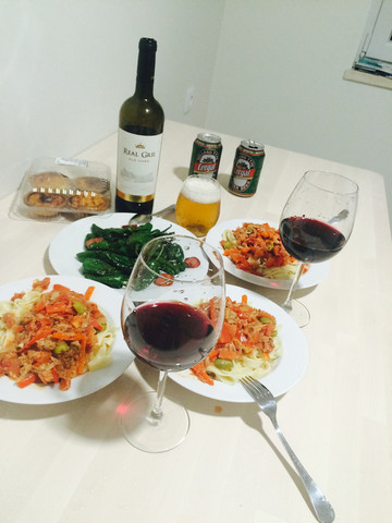晚上回家女儿为我们做的改良意大利面为主的晚餐。 甜蜜