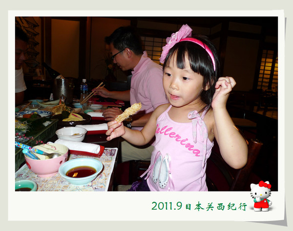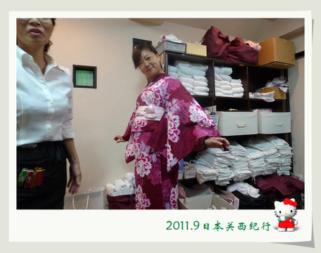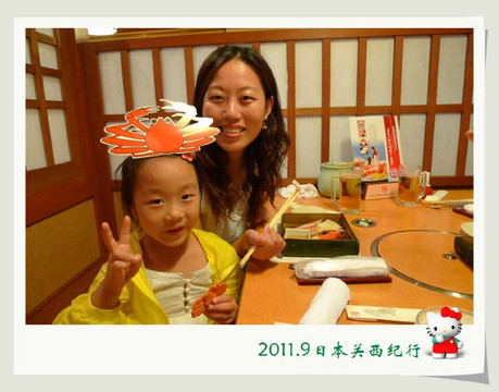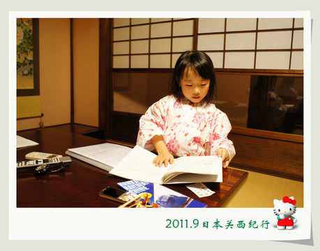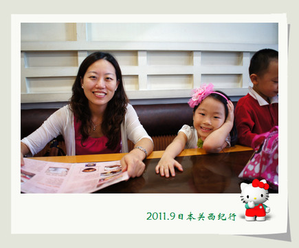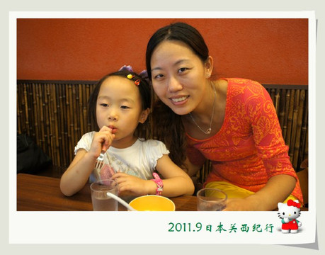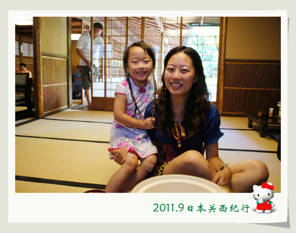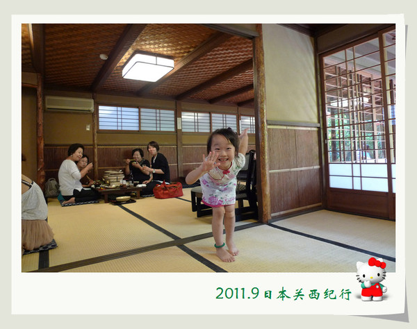 大婶听懂了,用日语加手势告诉小花在哪里,于是小花就很得意地从我们身边经过自己去了洗手间。