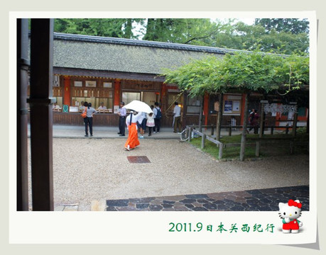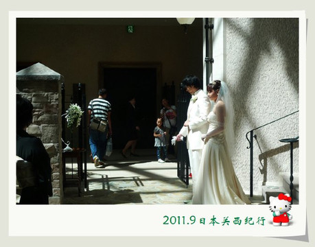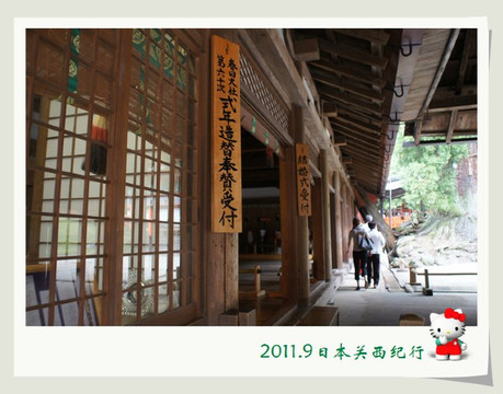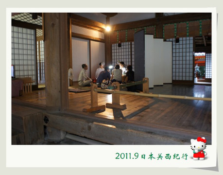走出大社时正好看见有一对年轻男女在榻榻米上与神社的人在谈着什么,虽听不到他们的说话,但估计一定是在谈论结婚仪式的事情啦。
