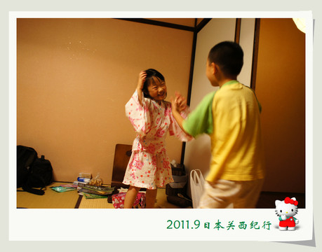 给小花换上了日式的睡衣,发觉这身打扮和整个房间的风格非常匹配、协调。