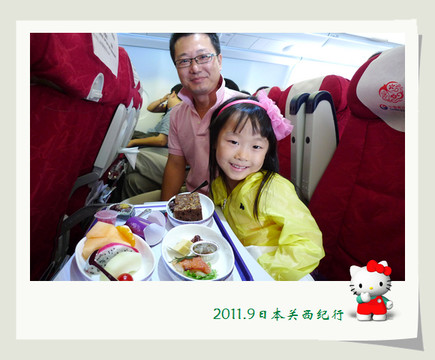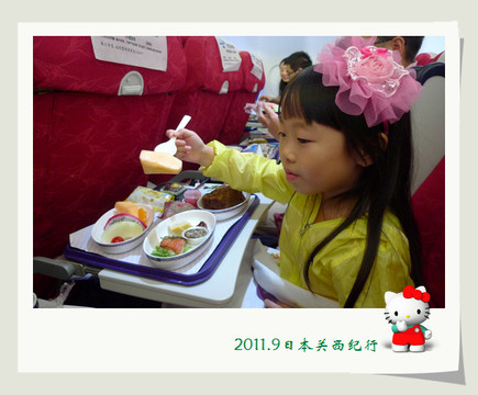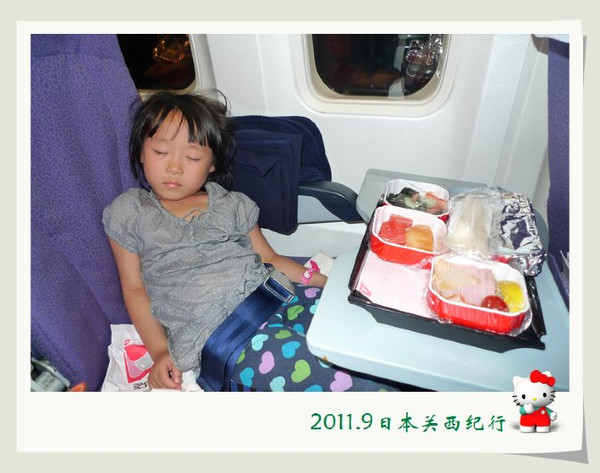 飞机起飞了,低低的发动机轰鸣声特别地催眠,不一会儿小花就睡着了。能玩也能睡,不得不佩服,小花似乎比花爸更有旅行的潜质。即便是飞机餐来了,小花也丝毫不为所动。