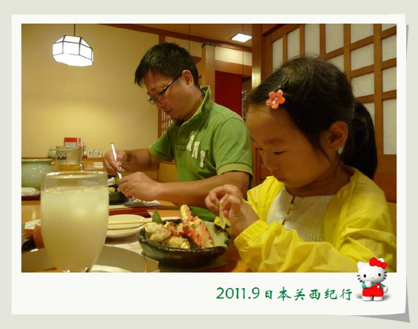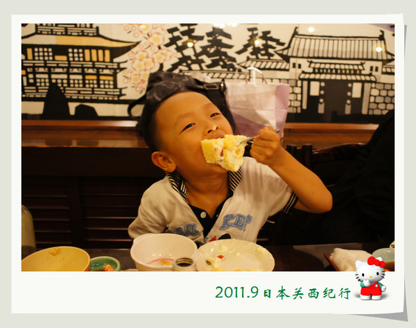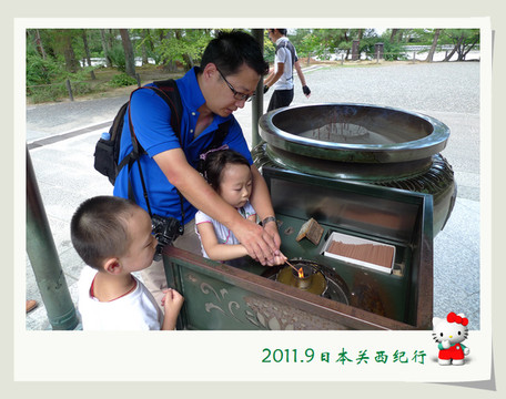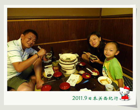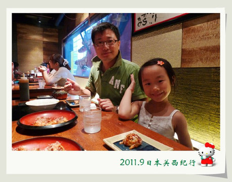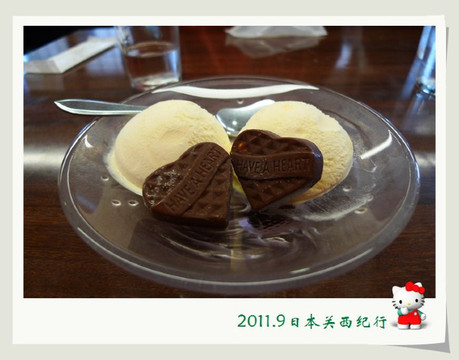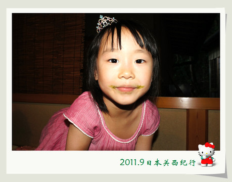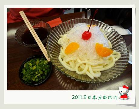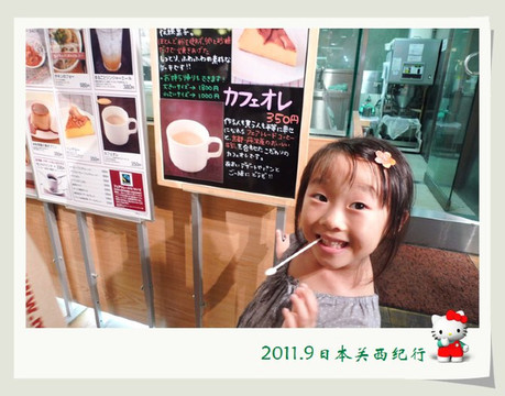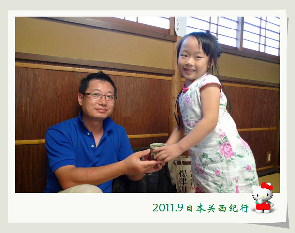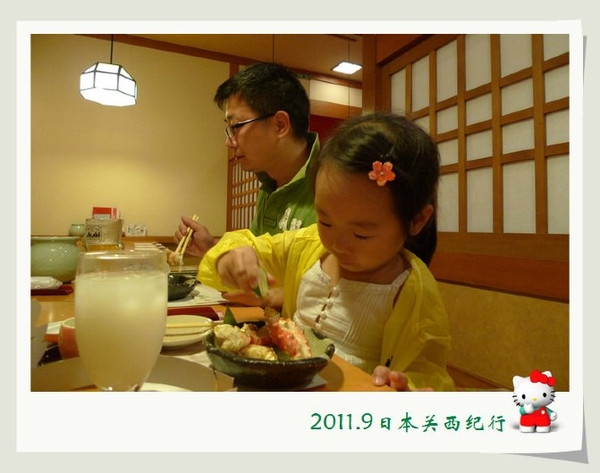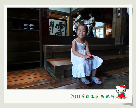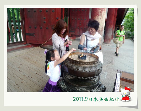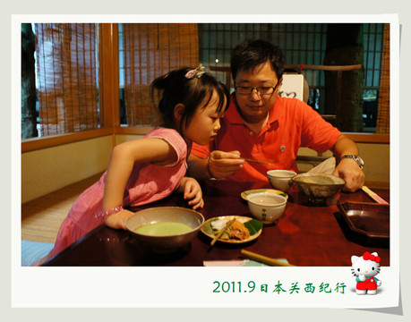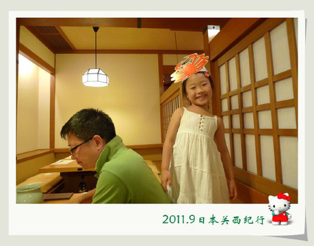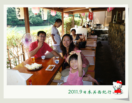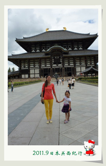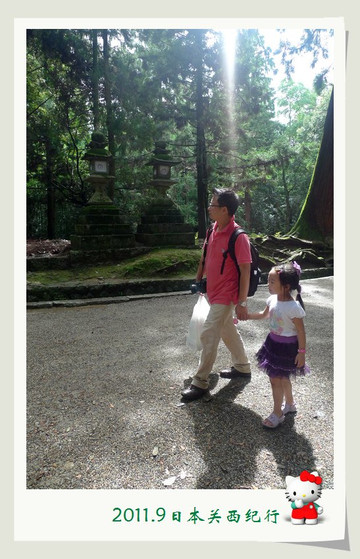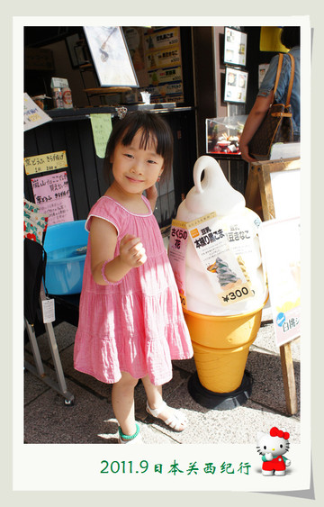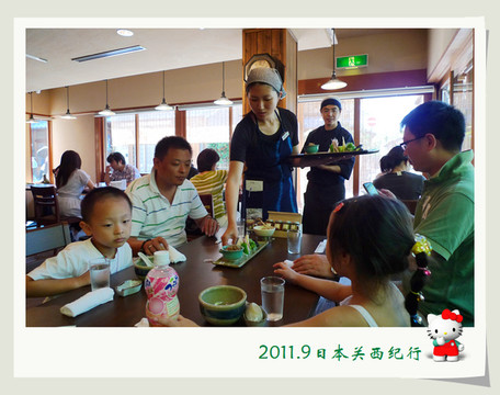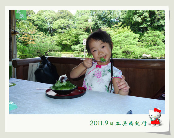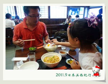 从东大寺出来后在路边找了一家茶屋用午餐。给母女俩点了猪排饭,给自己点了冷乌冬蘸面,饭后再来上一份冰激凌,大人小孩都一副满意的样子。