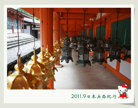 回廊上悬挂着一盏盏的长明灯,非常有特色。据说春日大社的长明灯(灯笼+石灯台)有3000盏之多呢。