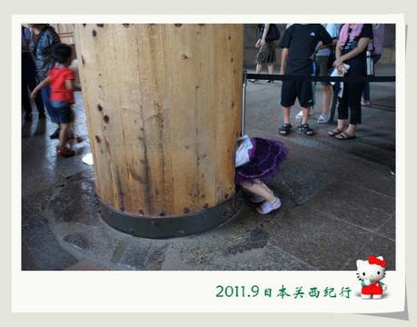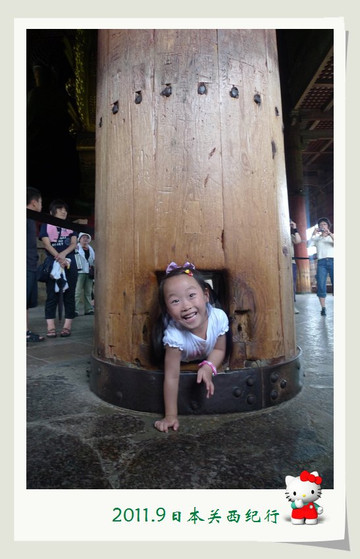 转到殿内东侧,看见大家排起了长队,原来有一根柱子下面有一个方形的洞,据说钻过这个洞就可以去除烦恼和忧愁,于是怂恿小花去钻。小花人小,很容易地就过了,有些大人也钻,那就真不容易了,有卡在里面出不来的,结果是在周围人的前拉后推下才好不容易过关的。花爸觉得自己钻不钻都没关系,看着这些苦苦挣扎的大人们,自己的烦恼忧愁就全没有了。