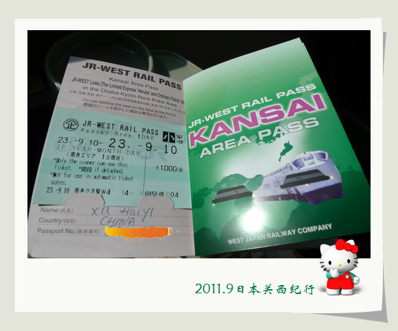 在西日本铁道的绿色窗口凭护照和回程机票购买了西日本铁路周游一日券,票价2000日元,可以乘坐包括HARUKA在内的快车,正常情况下从关西机场到京都的乘车券+特急券需要2980日元,而用到了周游券就节约了将近1000日元。这件事居然经常有机会来日本的花爸不知道,还是花妈指点的呢。