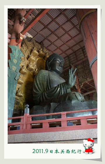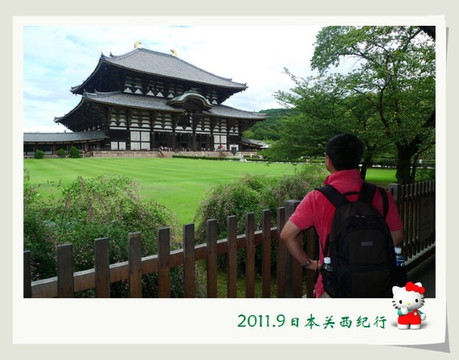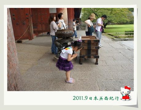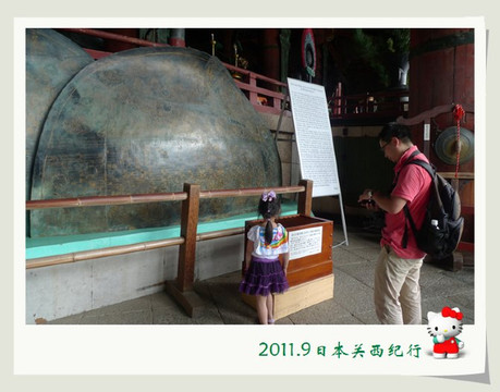 进得庙来,小花总算松了口气。因为这奈良为数众多的鹿却也知道这寺院是个神圣的地方,所以东大寺里面的区域是一头鹿也不进来。