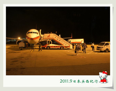 从关西机场飞浦东,不过就是2个小时的时间,从这个意义上来说,日本和中国真的很近。回到上海的时候夜色已经降了在了浦东机场上空,经历了一段快乐的旅程,怀揣着一颗快乐而轻松的心情,视乎周围的一切看来都是那么的惬意。10天的旅行,也恰好让我们对家有了一分的思念。