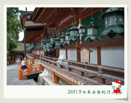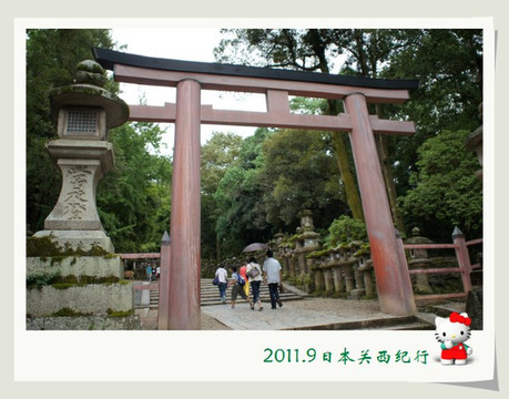 春日大社在表参道的尽头,朱红色与白色相间的建筑与周围的绿色形成了很好的反差,又得到了很好的融入。