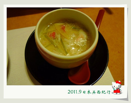 用完了生鱼片,会有一些煮物,可能内容上并没有太大出奇的,只不过是萝卜等,但就像我们的开水白菜之类的菜一样,虽然材料很普通,但收在萝卜中的汤汁却是大有学问的,这叫做功夫在诗外。