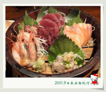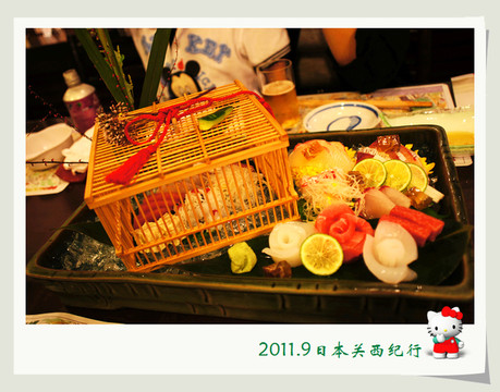 我们这次在美浓吉的刺身拼盘上,大师傅用了一个鸟笼子,也是颇有玩心的一个装点。