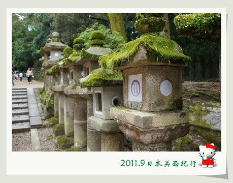 近1公里的表参道两侧有着不计其数的长明灯,这些长明灯都是由企业、团体、个人捐赠的,随着岁月的变迁,许多长明灯上已覆盖起了厚厚的苔藓,更是令人感到了一种厚重的历史感。