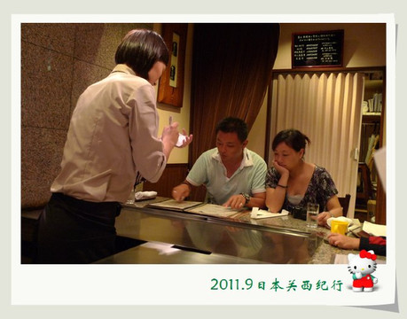 在日本,高级的餐馆都是以套餐的形式提供的,从前菜、刺身、煮物、烤物、炸物、蒸物、到主食和甜品,是有一套完整的美食提供的流程的,一般来说餐馆会有配套好的各种价位的套餐供客人选用,但遇到像花爸这样的吃货,现成的套餐当然不能满足需求,根据两家人的实际情况从不同的侧重点加以平衡,突出了美浓吉在刺身方面的功力,对女士们投其所好地加入了鳗鱼寿司,和餐馆的女将(客服经理)一起配了一套属于我们的套餐。