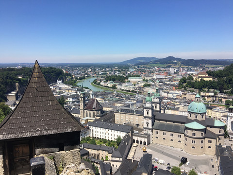 下一步再回到要塞外侧的小广场上,面朝着萨尔茨堡城区,看碧绿的河水穿城而过,静静的站一会儿,仿佛不是河水穿城而是我们穿越了时光。可惜不是啦。。。
