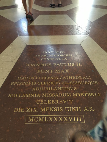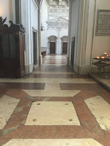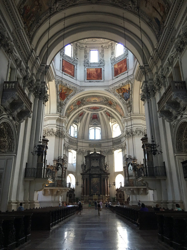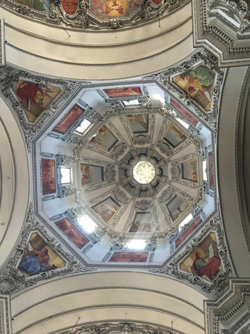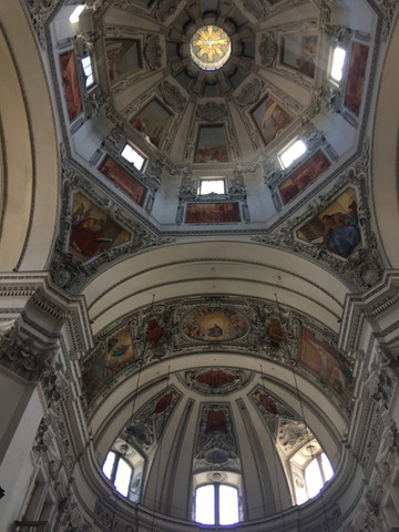 大教堂是17世纪巴洛克风格的天主教堂,一端是巨大的球形拱顶,入口处则有两个较小的塔楼,建筑风格大气恢弘,华丽庄严。进入教堂是免费的,沿着中间的通道走向主祭台时也不由自主的心生虔敬之意,孩子也放慢脚步,举头仰望。两侧回廊里供奉着历代重要的神职人员,有主教,也有修女,具体的事迹用古体德语镌刻在墙上,可惜时间有限、水平有限,竟也无法全都搞明白。人总是应该有点信仰,给心灵找个依托,我不是教徒,但我尊重那些虔诚的信众。一旦有了信仰,他们的灵魂是宁静的,他们的精神是快乐的!