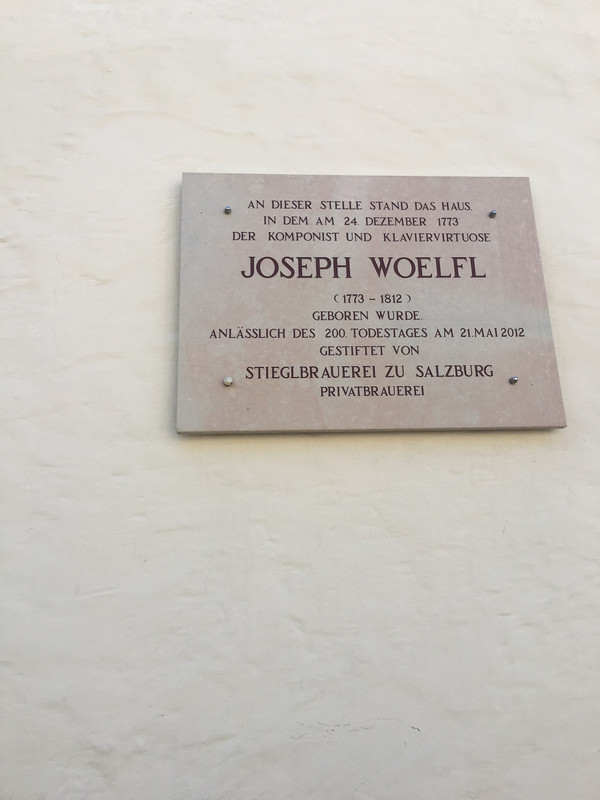 第四位:约瑟夫·沃尔夫,师从莫扎特的父亲学习钢琴,他的出生地就在圣彼得墓地门口的小巷子里,离要塞售票处非常近。: