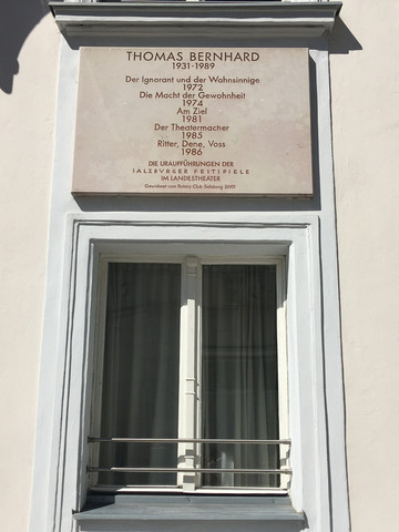 第三位:托马斯·伯恩哈德,著名小说家、戏剧创作家,他是战后德语文学的一座高峰(非主流),他的故居位于米拉贝尔花园南出口的右侧(要注意找才能看到)。