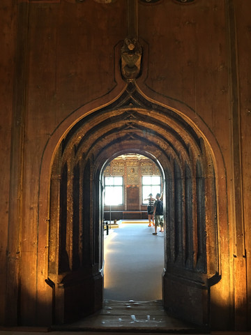 主教的金色大厅是我们这次的“加演”节目,金碧辉煌的“大厅”虽然并没有想象中的大,而且金色是镀金,但在明艳的阳光下,确实光彩夺目,想象当年宾客们在午后的阳光下,坐在闪闪发光的客厅里品茶吹牛,何等的快乐!墙角也有个纷繁复杂的陶瓷壁炉,工艺十分复杂,而且也还是四周也没有个炉门,让我想不通煤到底是怎么放进去的。。。这两间金色客厅外面是个真正的大厅,布置有大餐桌、室内乐队,不过整体的光线就比金色客厅要差得多啦!