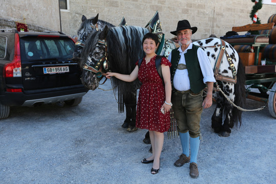 上一张漂亮的花马,我从来没见过这种花色的马,养马的奥地利爷爷相当可爱: