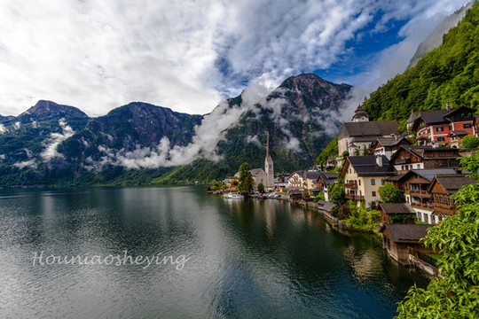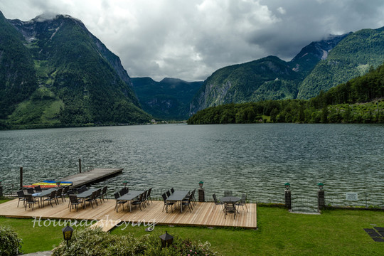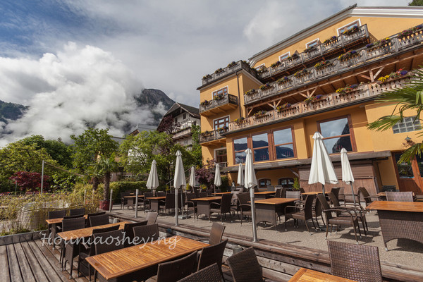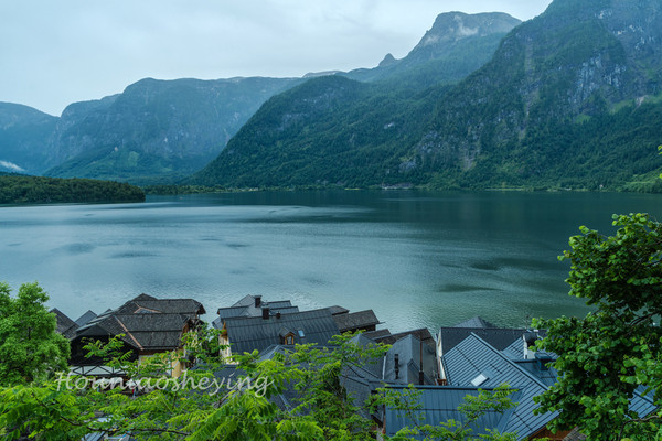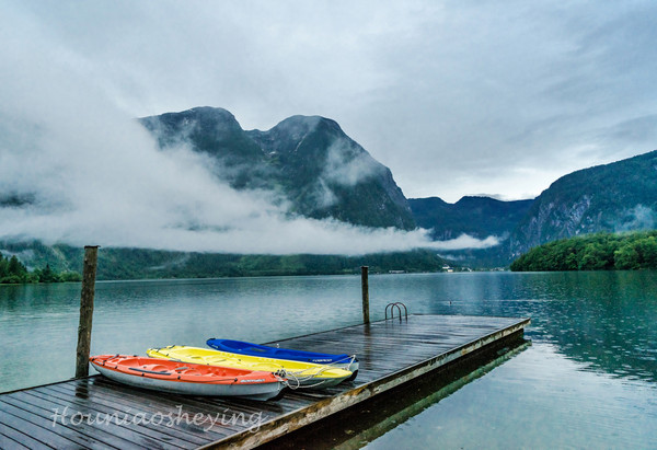 安排好住宿,3:40分大家乘坐酒店安排的小机动船(每人7欧元)从湖对岸来到小镇。此时天空下起了小雨,按照计划我们要赶到小镇的后山上去拍摄小镇全景,遇上一位当地的女士带我们来到了最佳拍摄地。我们带着雨具拍摄到6点,在小镇上找了一家餐馆用晚餐。之后,通知酒店来车接我们回酒店。(15欧元)