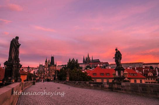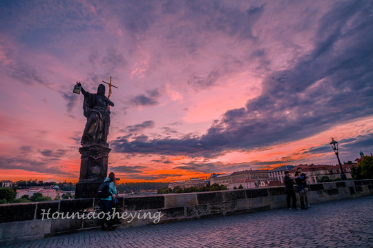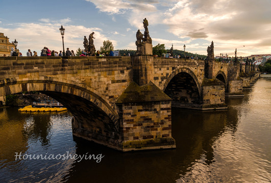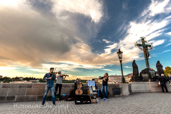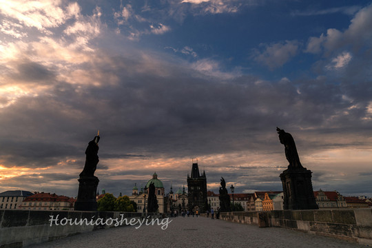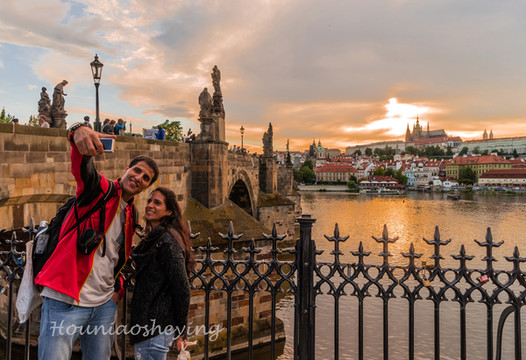 D11:(17日)原计划今天去布拉格主要景点拍摄。上午9:00出发大家抵挡不住沿街商店的商品诱惑,进店问价品货。今天就改为逛街休闲购物。布拉格购物街商品琳琅满目,与匈牙利和奥地利相比商品价格确实要低很多。始祖鸟品牌的冲锋衣是冲锋衣家族的VIP,在国内一件要买到四五千,这里只买两千左右;ecco鞋国内一双价格在一千七八,这里只要五六百。于是,大家狂购物品。10人统计ecco鞋就买了24双,摄影团在布拉格改为购物团了。东西买了钱也花了腰包也瘪了心里也痛快了!傍晚大家又聚汇在查理大桥拍日落。查理大桥是布拉格横跨伏尔塔瓦河古桥中最美的一座。建于1357年,是14世纪布拉格最具艺术价值的石桥。大桥两端是布拉格城堡和旧城区,桥上的30尊圣者雕像,出自捷克17-18世纪巴洛克艺术大师的杰作,被誉为“欧洲的露天巴洛克雕像美术馆”。如今,在桥上可以欣赏到艺术家的表演,感受到浪漫、休闲、文艺、优美,大桥已成为布拉格艺术的展示场所。