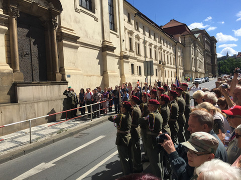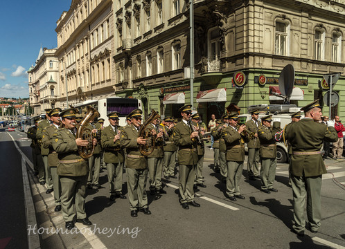 D12:(18日)早上5点继续在查理大桥拍摄。早餐后去跳舞的房子拍摄。跳舞的房子建于1996年,房子造型充满曲线韵律。蜿蜒扭转的双塔就像两个人相拥而舞,故称为跳舞的房子。左边是玻璃帷幔外观的“女舞者”,上窄下宽像舞裙的样子,右边圆柱状的是“男舞者”。我们继续沿街溜达,巧遇布拉格举办纪念二战活动仪式,抓拍了活动仪式场景。然后地铁去旧城广场拍摄。从布拉格旧城广场高处360度鸟瞰,布拉格全城尽收眼底,尖塔红顶建筑错落有致层次分明,威严屹立。中午在牡丹酒楼享用中国午餐。下午又坐地铁去布拉格城堡拍摄,晚上9:30在布拉格国家大剧院观看了一场芭蕾舞剧《天鹅湖》也算东欧之行的艺术享受吧。