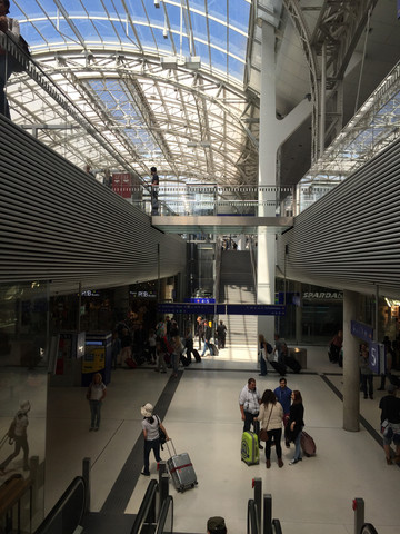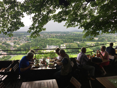 D6:(12日)今天上午11:40分由维也纳去萨尔茨堡。之前在国内通过奥地利交通网站购买了车票。这里还有一段小插曲:我们早早地就来到了客运大厅。到车站后Tao和晓遥就四处打听我们购买的车次应该在哪儿上车。一个小时的时间过去了,问了不少人包括车站方,都没有讲清楚上车地点。眼看就要到开车时间了,最后时刻一好心人看了我们的票,告诉我们:你们买的票上有一段德文,德文的意思是高铁票(一私营公司)。啊!原来是这样!现在离开车时间尚有15钟,好在高铁上车地点也在附近。于是,10人拉起箱子背起行囊百米赛跑,气踹嘘嘘终于在开车前登上了去萨尔茨堡的高铁。这有惊无险的旅途插曲,也成为我们东欧之行的笑谈。